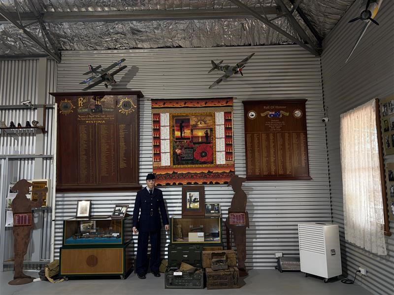 The War Memorial has been relocated from the Old Miners Hall to the Hoodpenn Museum. It holds the WWI Roll of Honour and WWII Roll of Honour. For more information on Westonia's War Memorial visit the Outback Family History Website by Clicking Here.